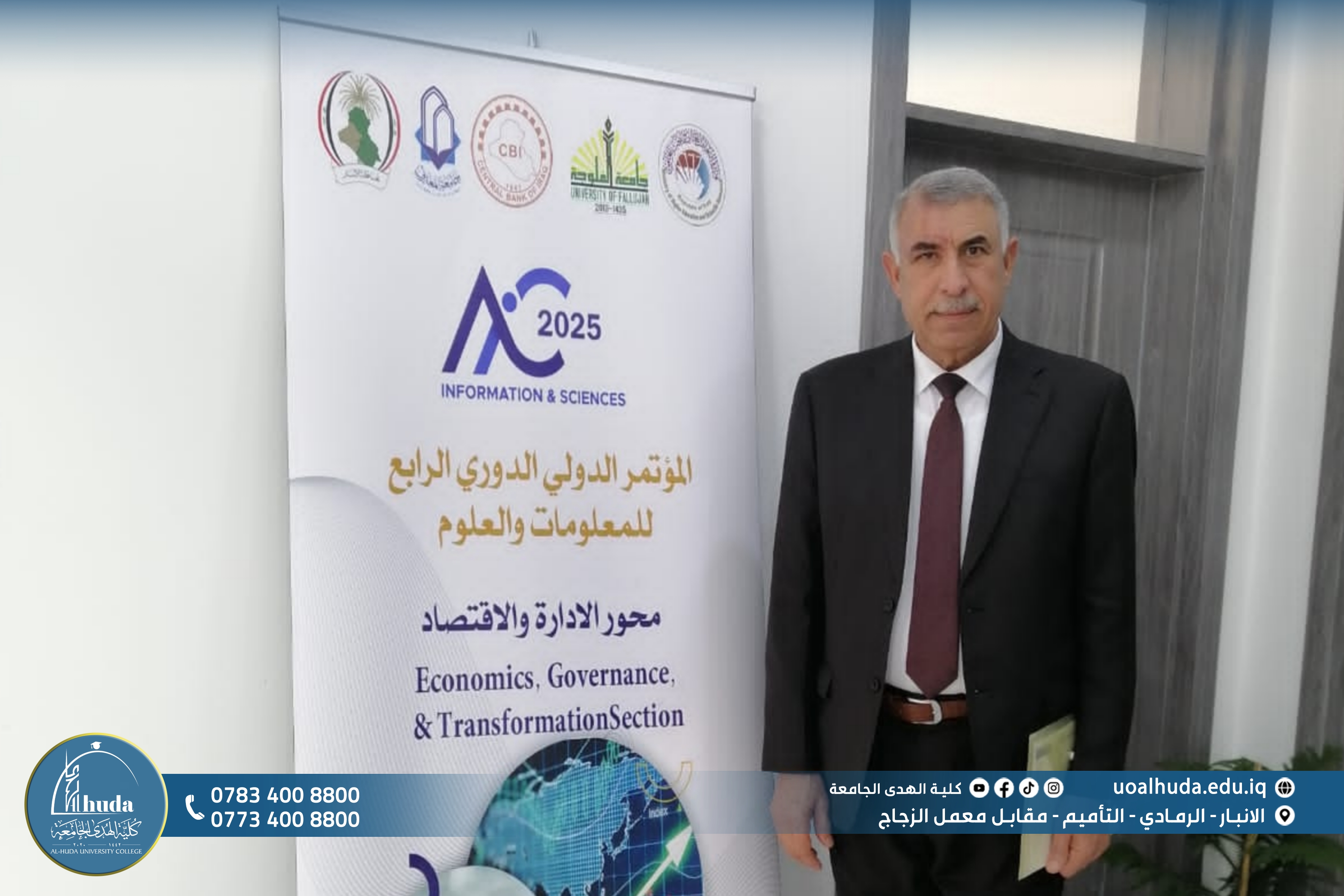 Professor Dr. Nazim Abdullah Abid Mohammadi, Assistant Dean for Scientific Affairs, participated in the activities of the 4th International Scientific Conference on Management, Information, and Sciences (AICIS 25), organized by Al-Fallujah University, within the management and economics track.