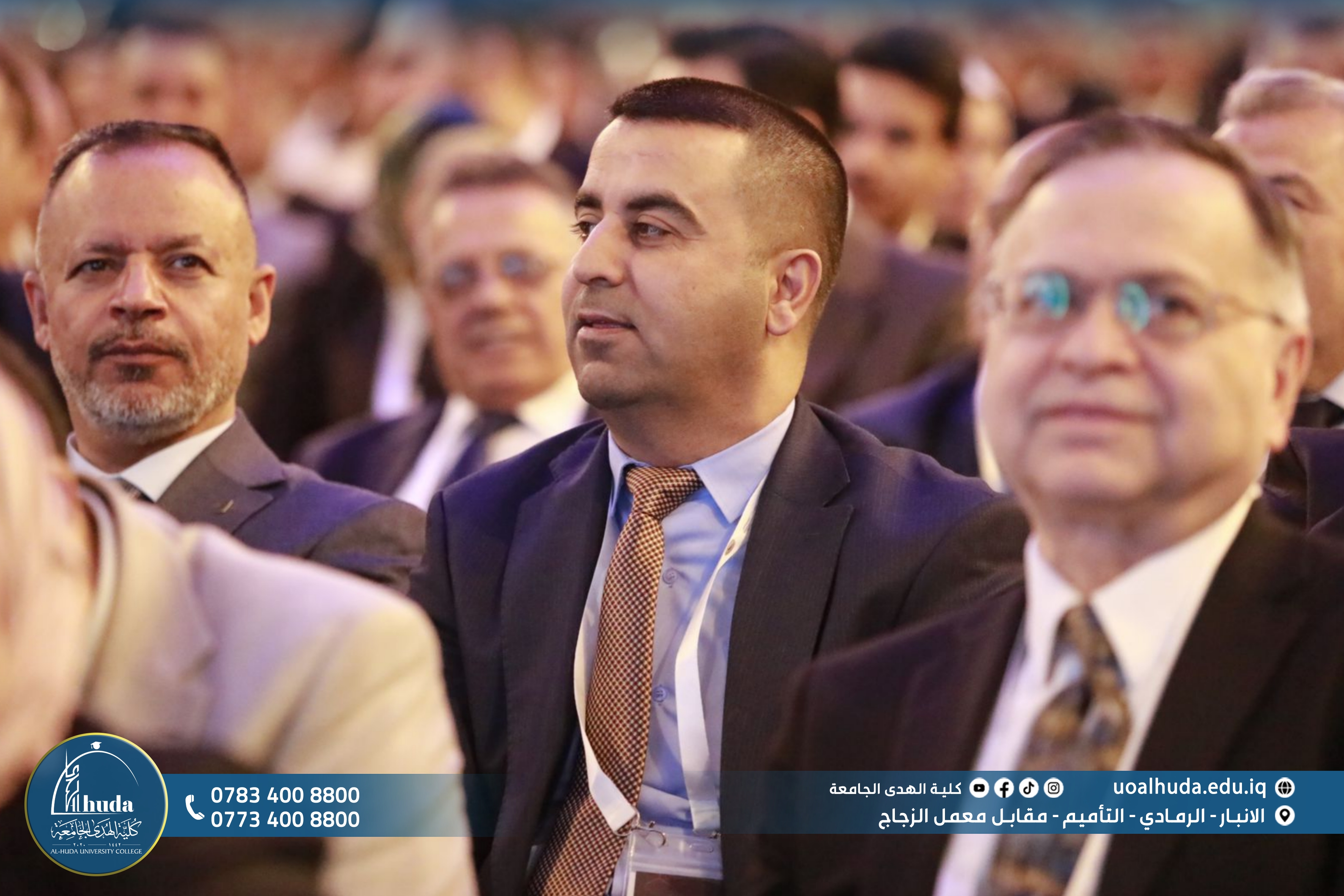 The Dean of Al-Huda University College, Professor Dr. Omar Abdulkareem Jasim, participated in the proceedings of the Iraq Education Conference 2025, in its second edition, held on Saturday, October 11, 2025. The conference was inaugurated by the Minister of Higher Education and Scientific Research, Dr. Naeem Al-Aboudi, with the participation of a distinguished group of international experts and representatives from Times Higher Education, Clarivate, Elsevier, QS, and the Egyptian Knowledge Bank.