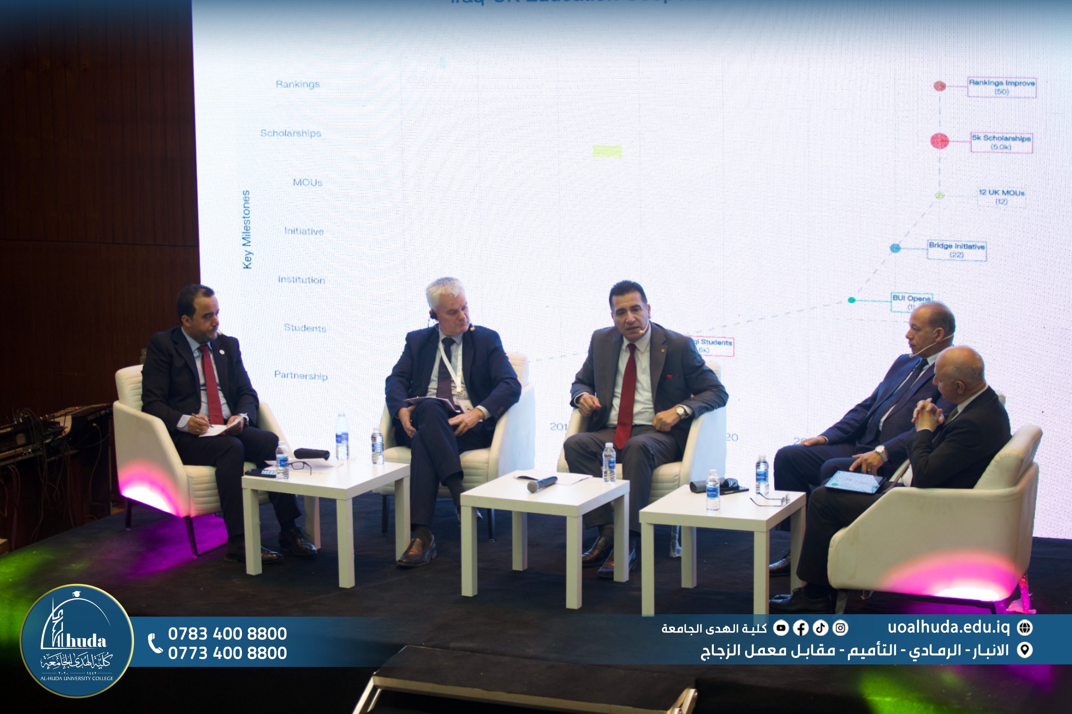 The staff of Al-Huda University College continued their engagement in the Iraq Education Conference 2025 by participating in a dialogue session led by the Higher Committee for the Development of Education in Iraq. The session included presentations on future plans for the advancement of higher education and initiatives for international scholarship programs to prestigious global universities.