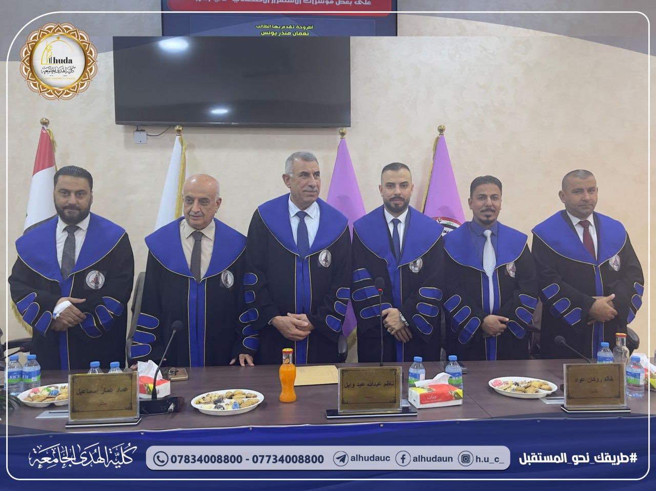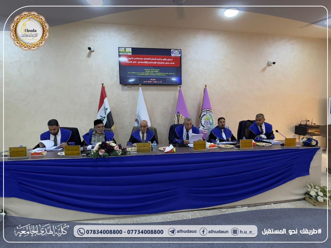 In the presence of Professor Dr. Ahmed Suleiman Hamad Al-Muhammadi, President of the University of Fallujah. The discussion committee consisted of faculty members whose names and academic titles are listed below: